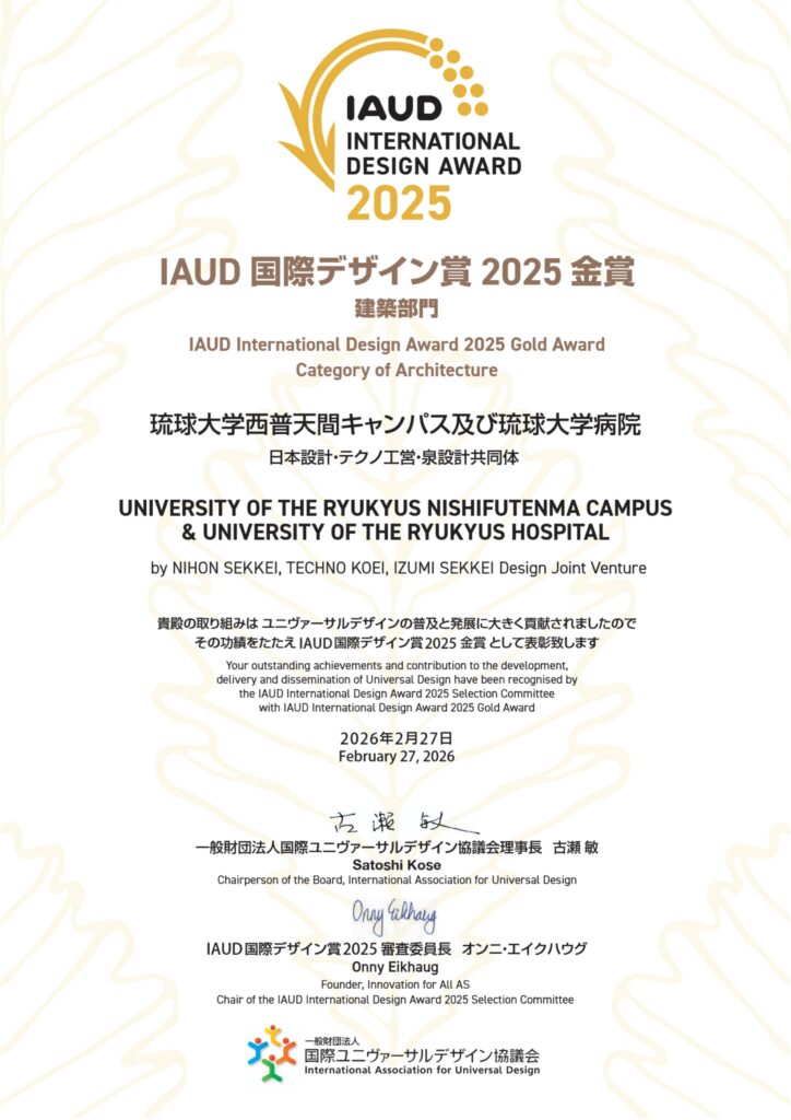 「IAUD国際デザイン賞2025 建築部門 金賞」を受賞しました!